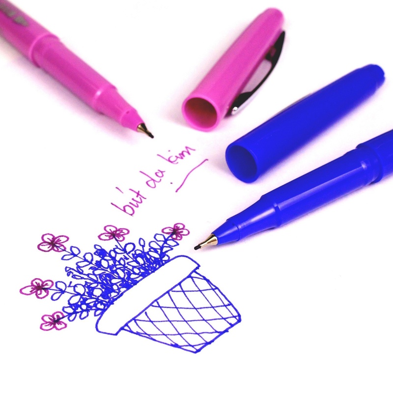 - Bút có hai màu sắc phổ biến là xanh và tím, phù hợp với nhu cầu sử dụng của nhiều đối tượng.
