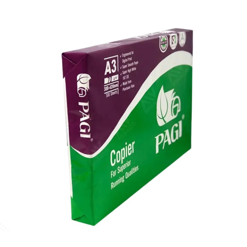 - Giấy in Pagi xanh A3 định lượng 70 gsm cân bằng giữa độ bền và tiết kiệm, phù hợp in ấn đa năng.