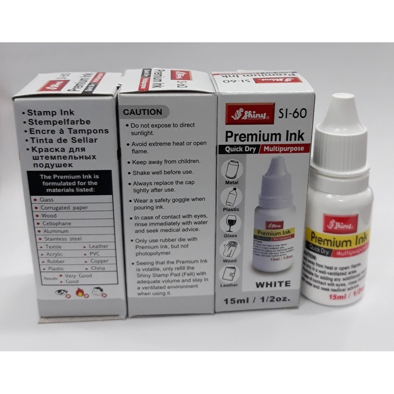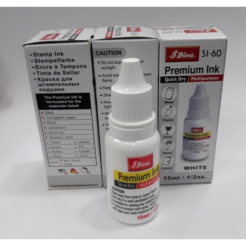 - Màu sắc tươi đẹp, bền màu theo thời gian không phai, không nhòe. Mực dấu Shiny Si-60 có nhiều màu sắc cho người dùng lựa chọn, bao gồm: đen, đỏ, xanh dương, xanh lá cây, tím, trắng.